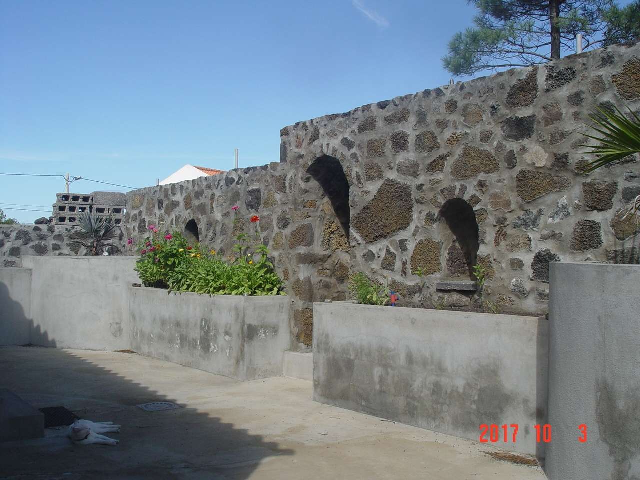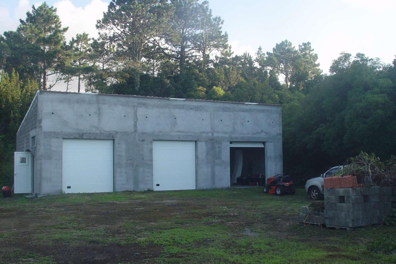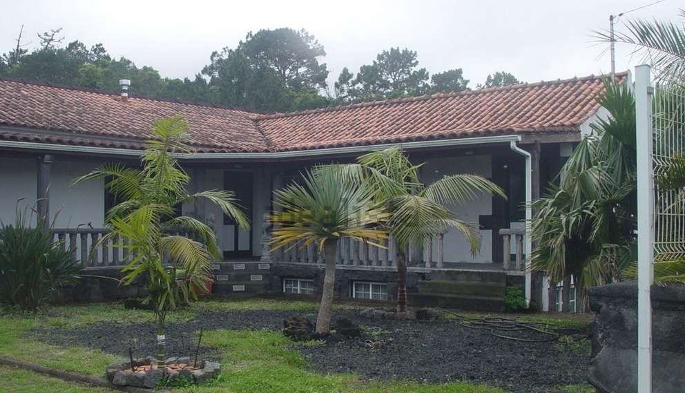 Stone and block house with apartment (275 m2), with garage and 3 large storage garages (145 m2), roads, 12.650 m2 land, with views of the surrounding islands and the Mt. Pico. Cleared flat land is about 8000 m2 (the rest of the land is mostly flat and forested). I accept permanent property swap for EU countries.